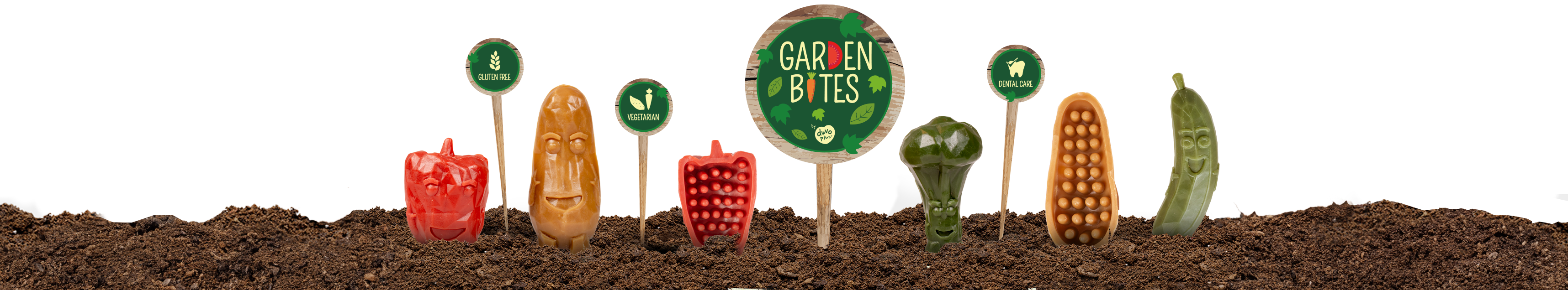 Veggie Friends, Toby Toothbrush, Dental Twisters, Dental Sticks, Vegan Bones are with sweet potato, paprika & broccoli.